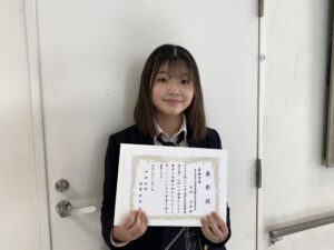 本校生徒が中央大学の高校生地球環境論文賞で最優秀賞を受賞しました Home / その他 / 本校生徒が中央大学の高校生地球環境論文賞で最優秀賞を受賞しました 本校生徒が中央大学の高校生地球環境論文賞で最優秀賞を受賞しました 2022年3月2日 その他 5年生の松野志保さんが 中央大学の第21回高校生地球環境論文賞で最優秀賞を受賞しました。下のリンクから論文を閲覧することができます。 おめでとうございます! リンク 中央大学 高校生地球環境論文賞 About the author: TGUISS Related Posts 【6年国際教養】「国際6」で世界とつながる(2) 2025年11月28日 TGUISS 第20回東日本高校生フランス語スケッチコンクールに参加しました! 2025年11月26日 TGUISS 第69回日本学生科学賞 東京都大会 表彰式のご報告 2025年11月21日 TGUISS 2025年度4年生Personal Project展示中 2025年11月20日 TGUISS 【国際教養】第19回全日本高校模擬国連大会・本大会出場 2025年11月20日 TGUISS 【15回生】無事にタイWCを終えました! 2025年11月18日 TGUISS 【4年・国際教養】探究準備「問いを立てる」講話 2025年11月17日 TGUISS 【17回生】沖縄WC 3日目 2025年11月13日 TGUISS 最近のお知らせ 検索: