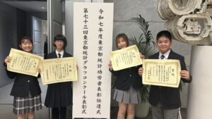 2025年11月12日(水)、第73回東京都統計グラフコンクールの表彰式が行われ、本校からは4名の生徒が表彰されました。